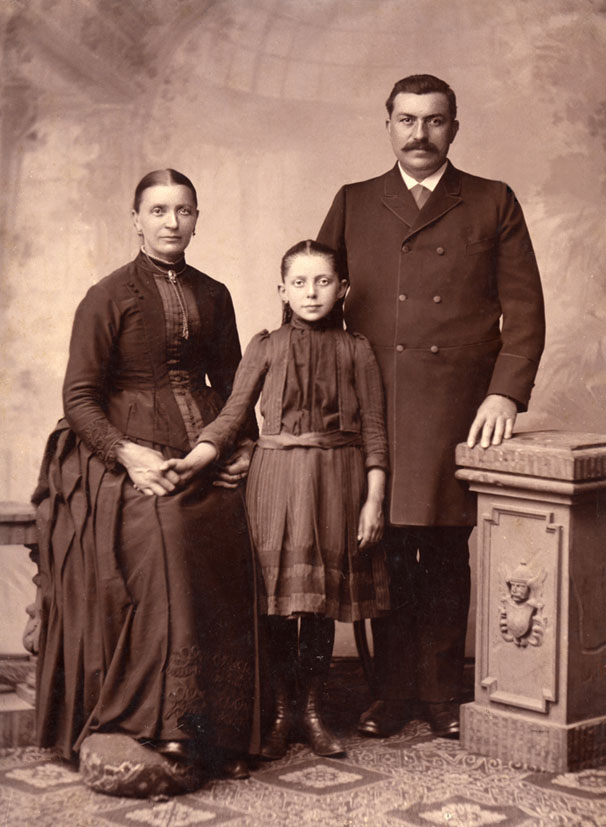 De oudste zonen Jan en Bernard kwamen in de firma aan de Molenstraat. Links Jan Sanders met zijn vrouw Johanna Ottenhof en dochter Bertha. Rechts Bernard Sanders.