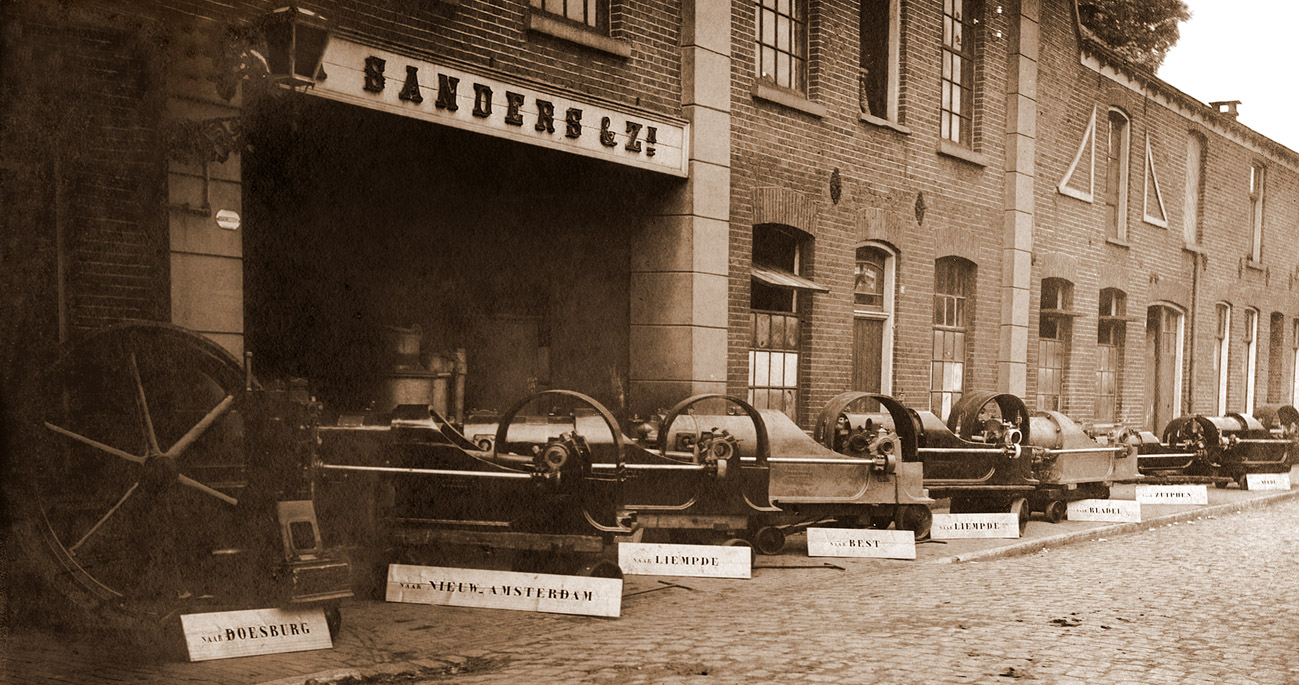 In 1868 verhuisde het gezin Albert Sanders-Effting van Haaksbergen naar Enschede. Hier werd eerst aan de Oldenzaalsestraat en vanaf 1873 aan de Molensteeg gesmeed bij het licht van het smidsvuur. Toen in oktober 1883 oprichter Albert Sanders plotseling overleed, zetten de twee oudste zonen, Jan en Bernard, de firma voort onder de naam A. Sanders & Zoon. De smederij groeide gestaag uit tot IJzergieterij en Machinefabriek.
