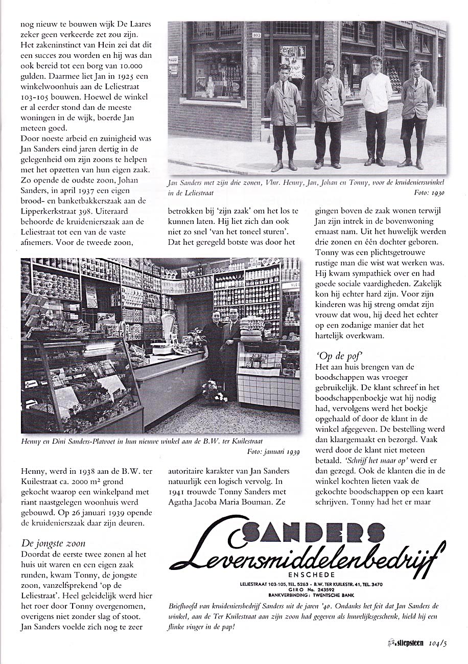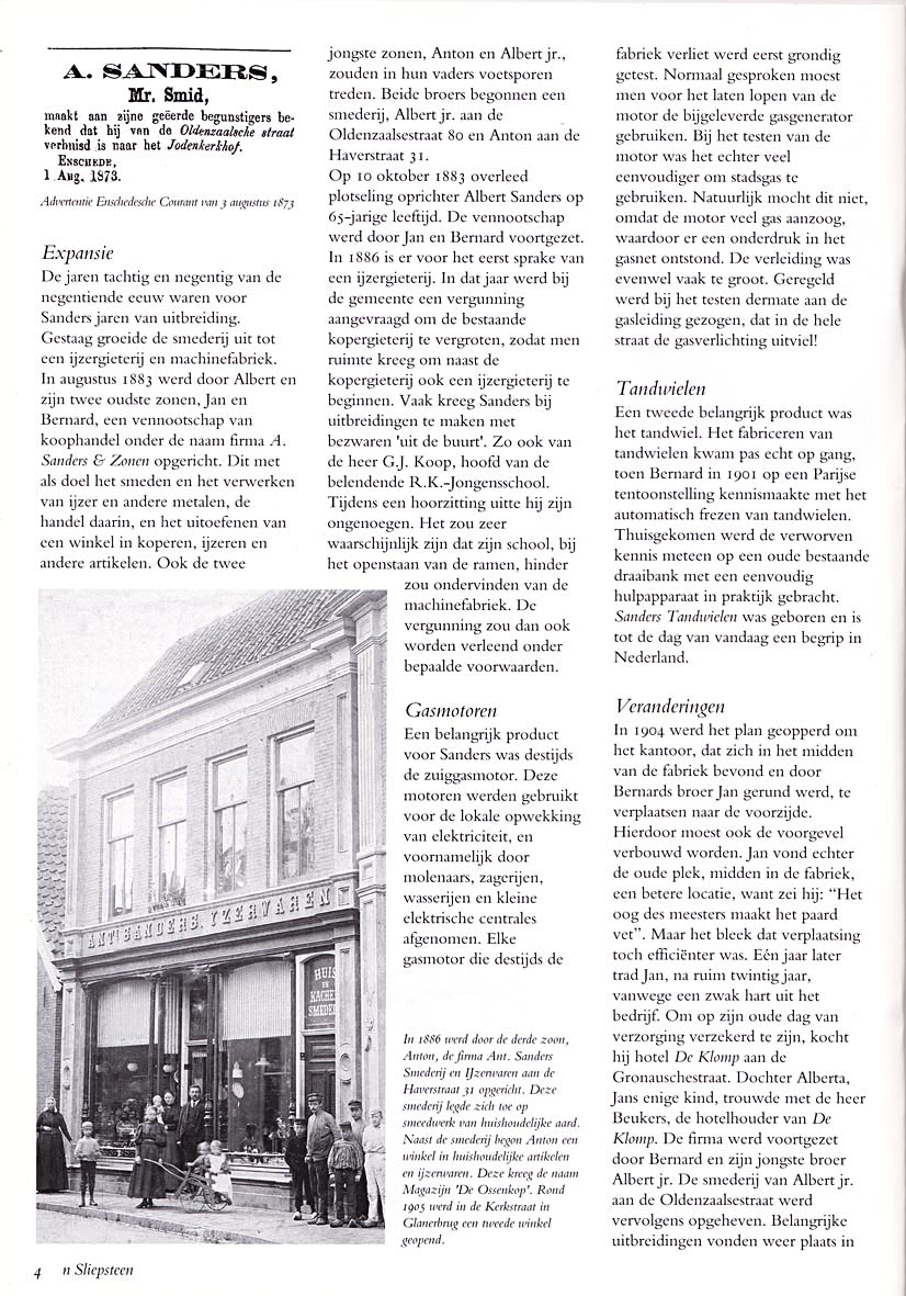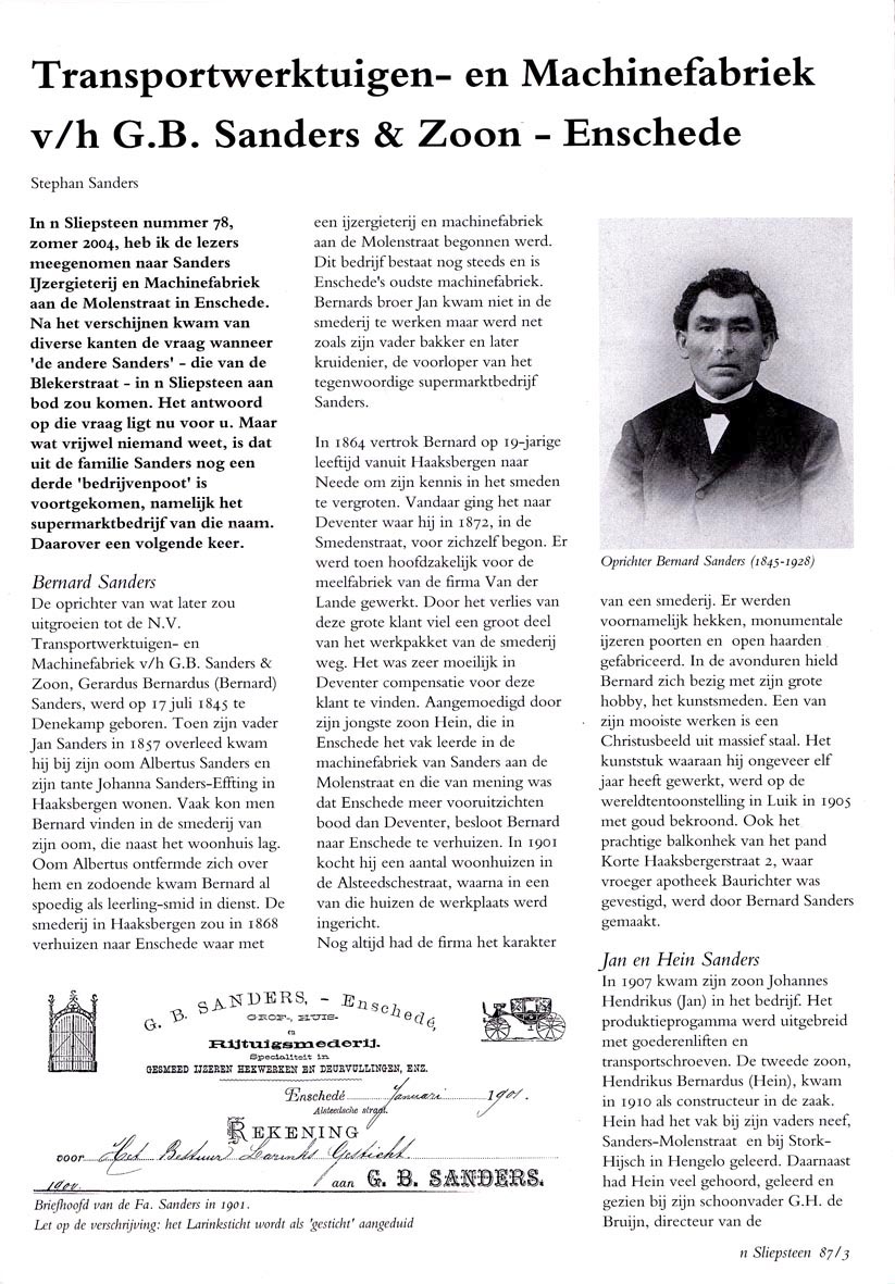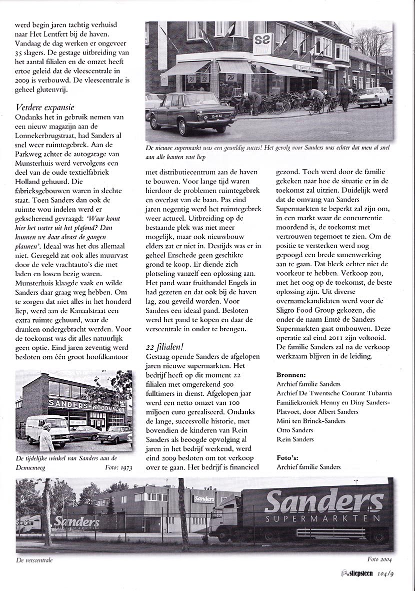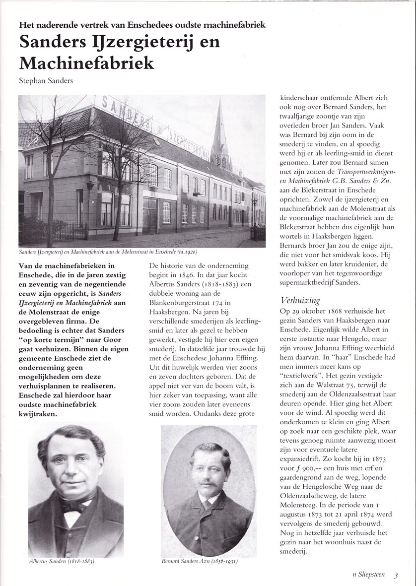 In het tijdschrift van de Stichting Historische Sociëteit Enschede-Lonneker, 'n Sliepsteen, stond de afgelopen jaren drie artikelen over de familie Sanders.