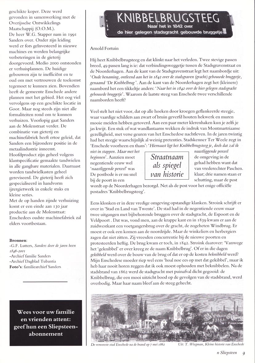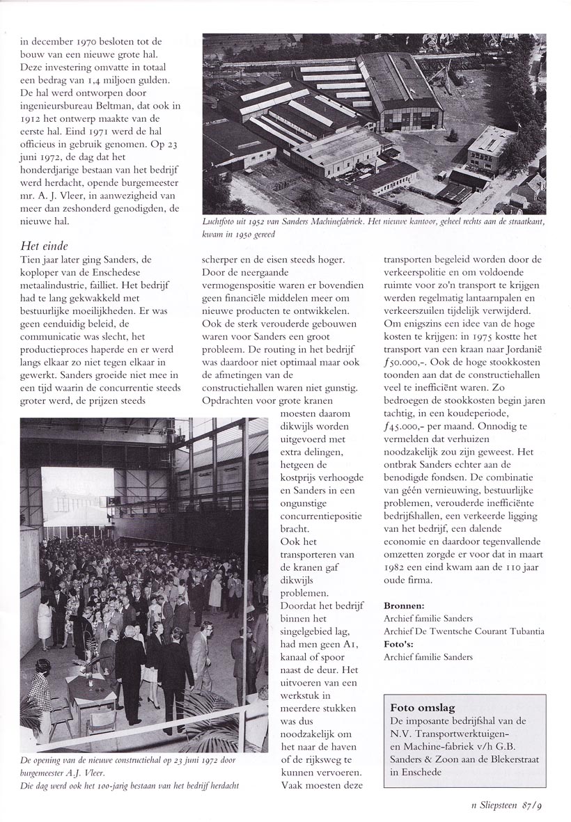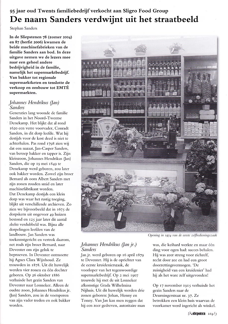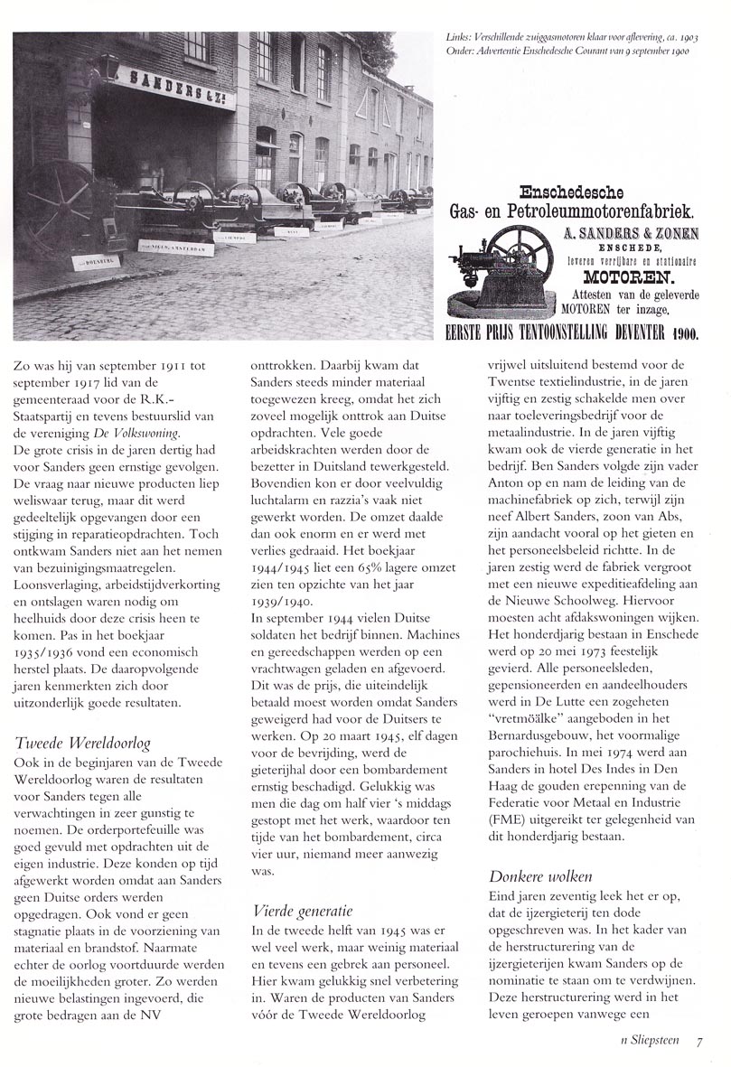 In het tijdschrift van de Stichting Historische Sociëteit Enschede-Lonneker, 'n Sliepsteen, stond de afgelopen jaren drie artikelen over de familie Sanders.
