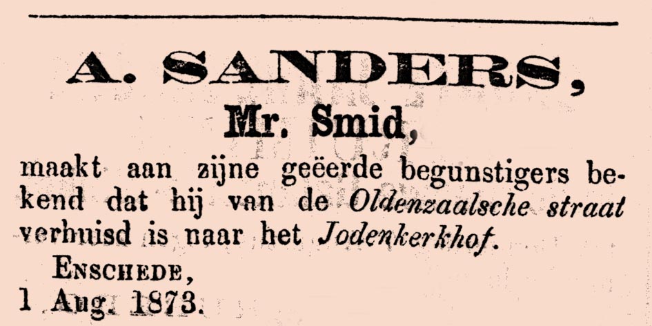 Op 29 oktober 1868 verhuisde het gezin Sanders van Haaksbergen naar Enschede