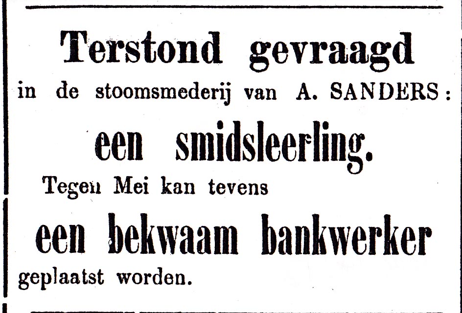 In 1886 werd door Antoon Sanders de firma Ant. Sanders, smederij