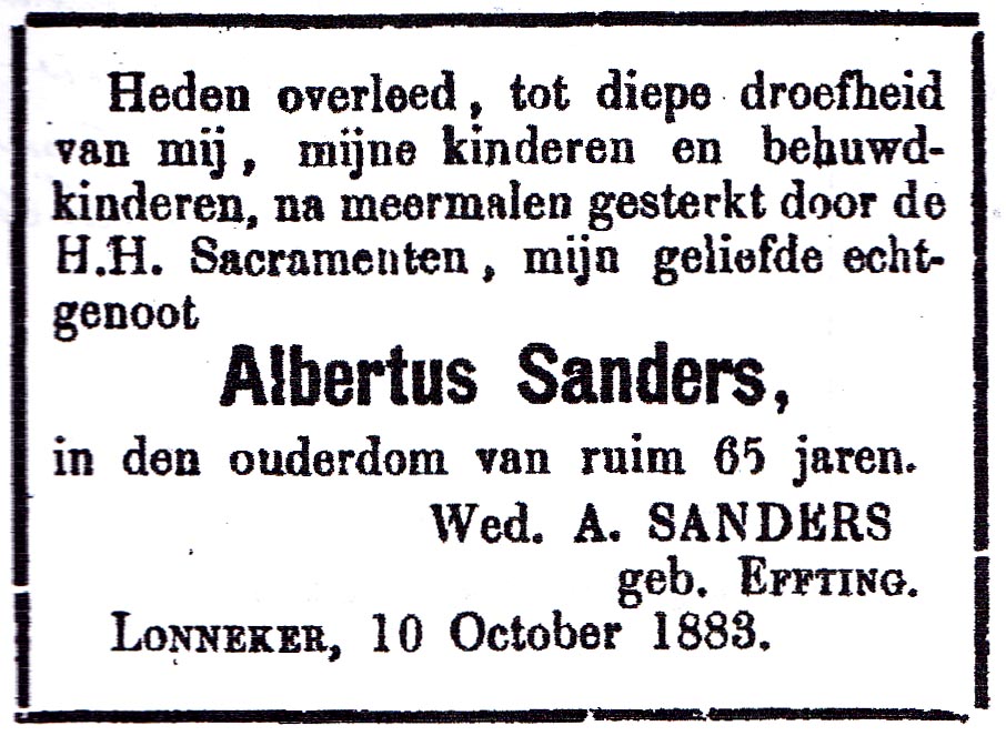 Op 19 augustus 1886 trouwde Antonius ( Anton) Sanders, de derde zoon van