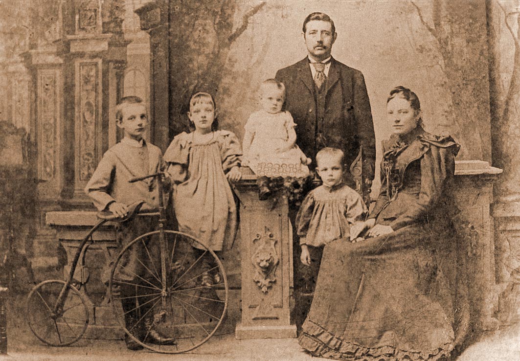 Anton Sanders samen met zijn vrouw en kinderen. Vlnr.: Albert, Anna, Maria, Anton, Frans en Antonette. Dochter Maria overleed op 7 mei 1896.