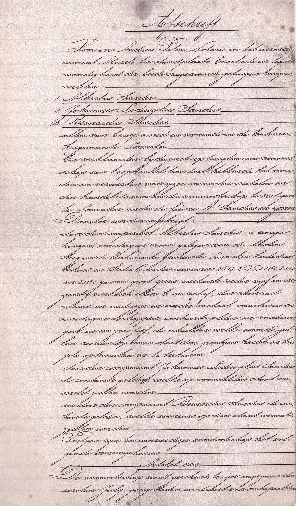 De historie van de onderneming begint in 1846. In dat jaar kocht Albertus Sanders