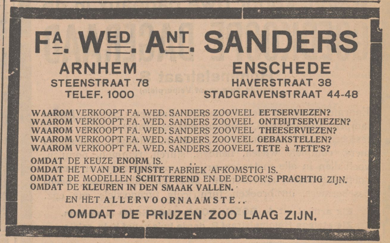 Advertentie uit de Tubantia, 26 Oktober 1920.