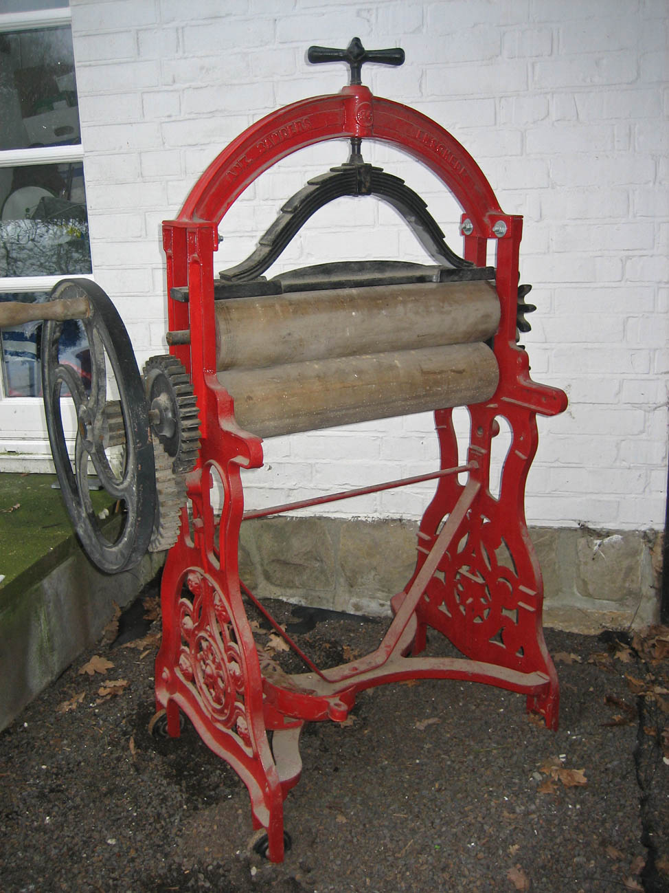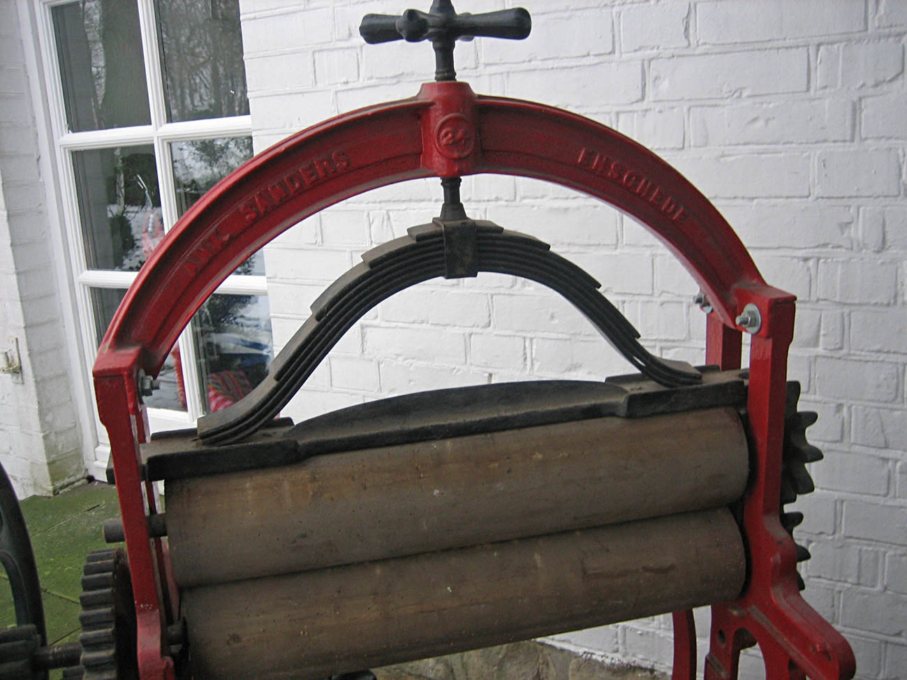 Een mangel van de firma Ant. Sanders. Deze werd in Duitsland gevonden en moet van voor 1912 zijn. De mangel