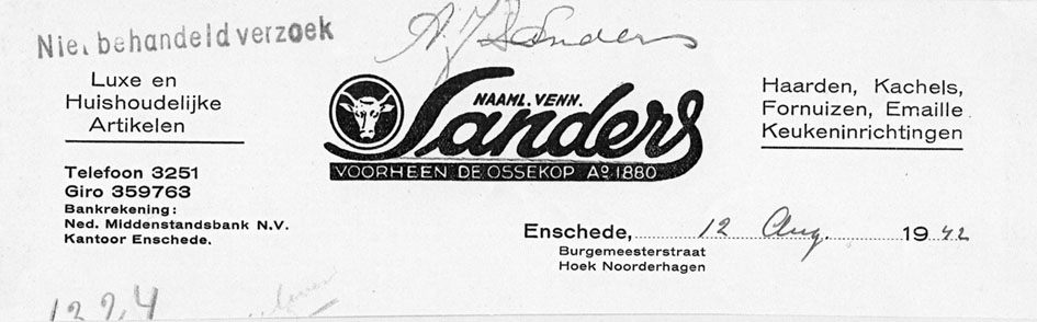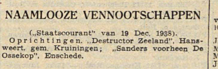 Eind 1938 werd de samenwerking met de huishoudelijke artikelenzaak Ruppert uit Hengelo gestopt. De firma werd in een NV omgezet met als nieuwe vennoot Sanders Machinefabriek .