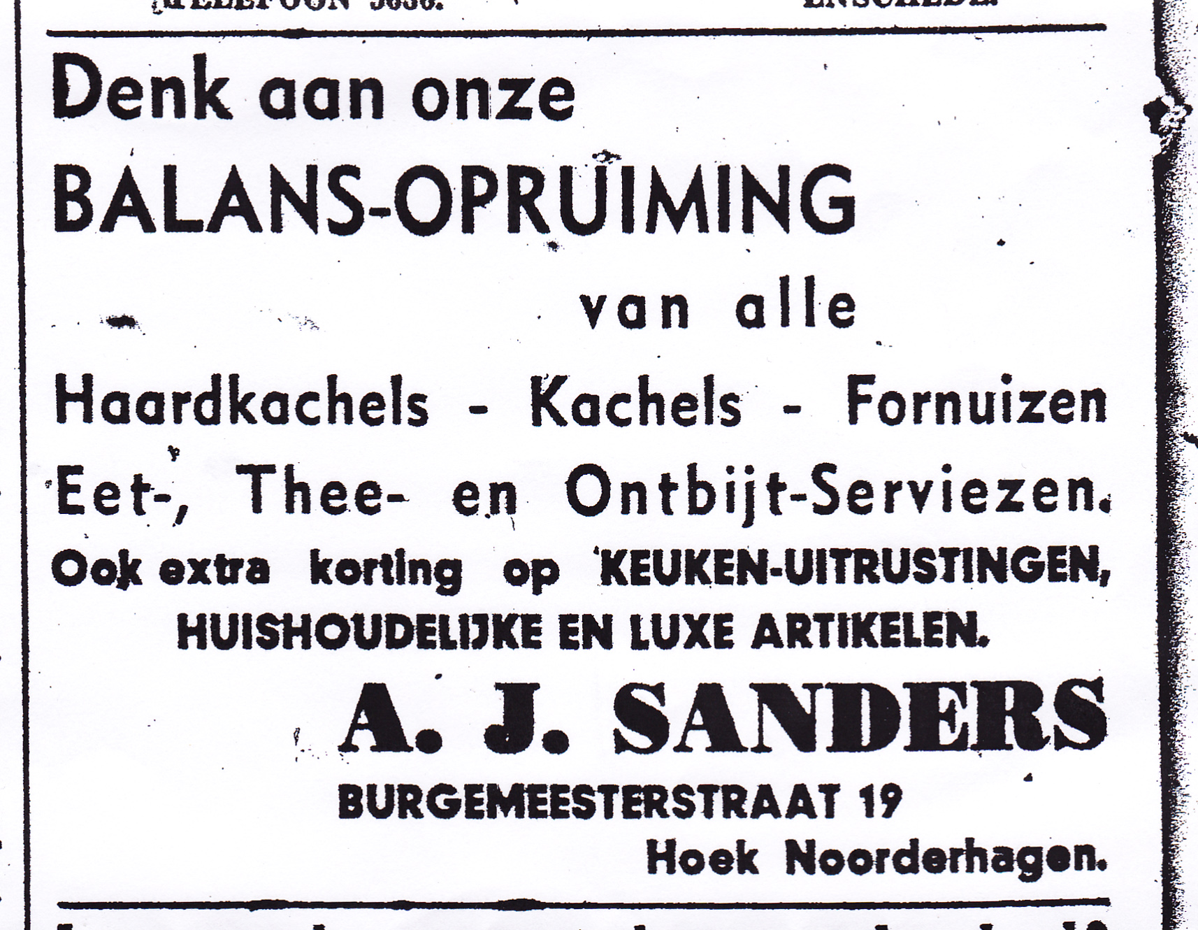Terwijl Frans een eigen brandstofhandel te Lonneker begon maakte Albert met behulp van zijn neef, die in Hengelo de huishoudelijke artikelenzaak "Ruppert" bezat, een doorstart. De nieuwe zaak opende zijn deur aan de Burgemeesterstraat hoek Noorderhagen. De panden van de opgeheven firma waren nog steeds eigendom van Antonette Sanders-Mosman. Besloten werd om deze te verhuren.