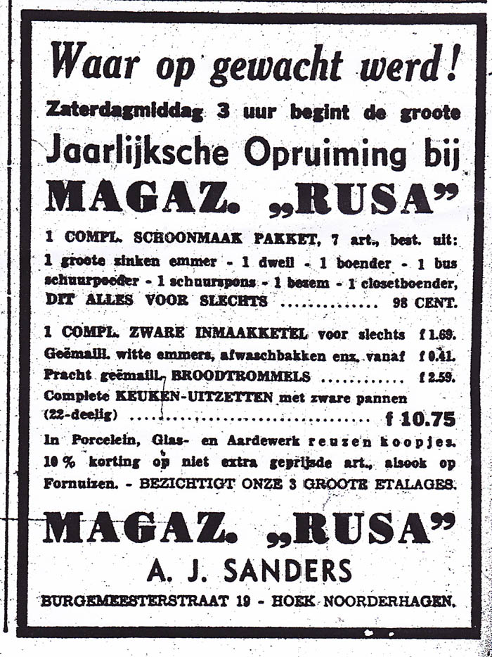 De doorstart van de firma de Ossekop door Albert Sanders in 1936, was echter geen lang leven beschoren. Al in 1949 ging de zaak ten onder. Dit betekende het definitieve einde voor de bekende huishoudelijke artikelen zaak.