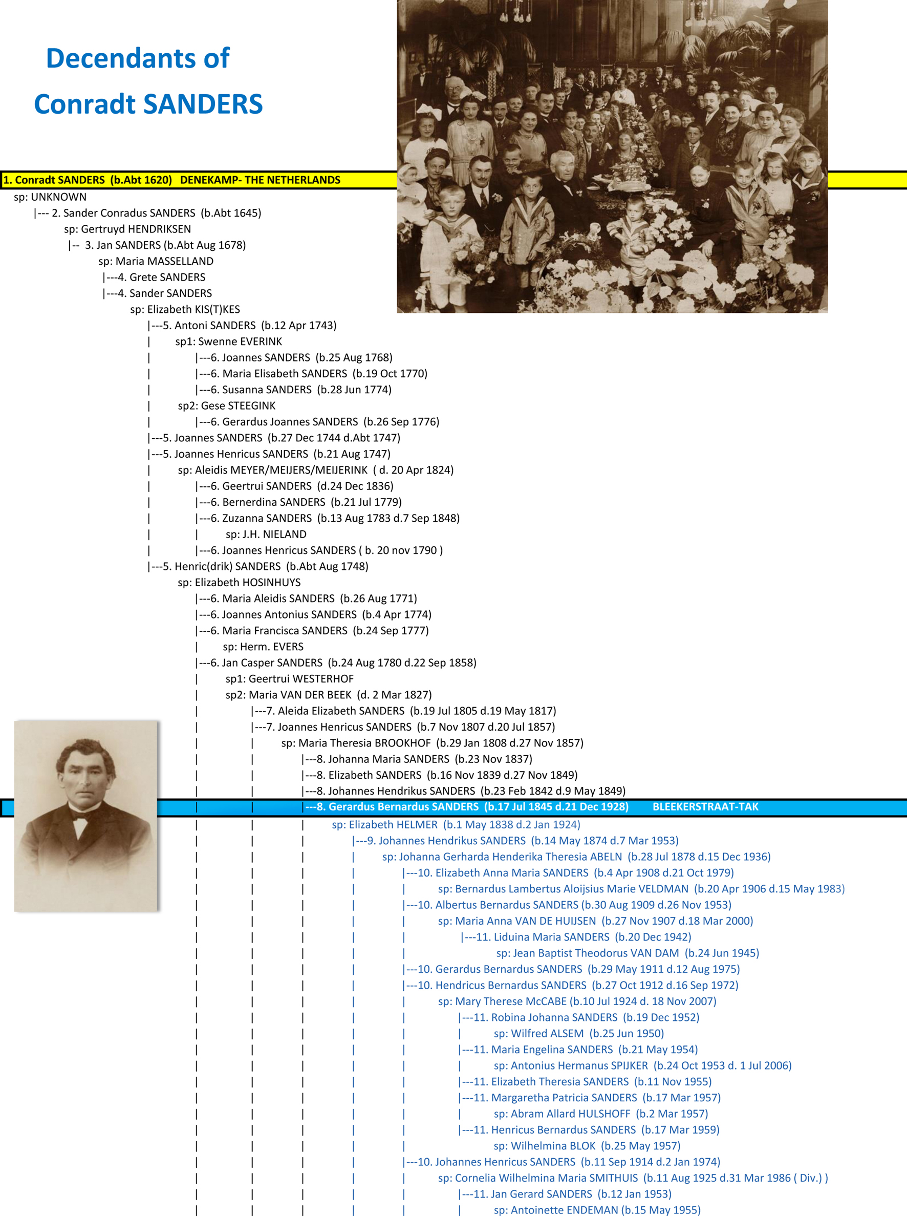 Welkom op de site van de familie SANDERS. Een informatieve site over en voor alle nazaten van de uit Denekamp afkomstige Conradt Sanders (1620).
